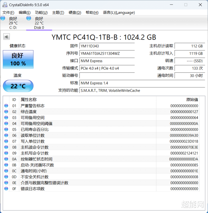 想知道写入量是否真对SSD寿命造成实际影响,可以看SMART信息里面的“可用备用空间”和“介质与数据完整性错误计数”这两项,前者就是SSD预留的OP空间剩余百分比,SMART全部都是16进制的,所以这项目前数值是64,换成算10进制就是100,也就是写入接近400TB数据后预留OP空间还是完整的。后者则是用于记录控制器检测到的、无法自我修复的数据完整性错误次数,目前还是0说明SSD还很健康。