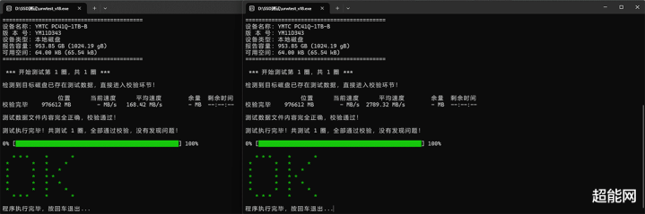 PC41Q在经过高温的考验后从新装到测试机上,再使用urwtest软件进行数据校验检验可靠性,SSD很顺利的通过了这项测试,没有出现数据出错的问题,只不过校验速度降低至168.42MB/s,说明闪存其实出现了电荷泄漏的现象,但校验数据没出错说明这是可逆的,我们把SSD通电放置了一晚后重新校验了一次,校验速度已经恢复到2789.32MB/s,说明文件读取速度已经基本恢复正常水平。